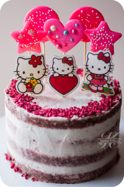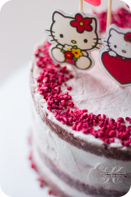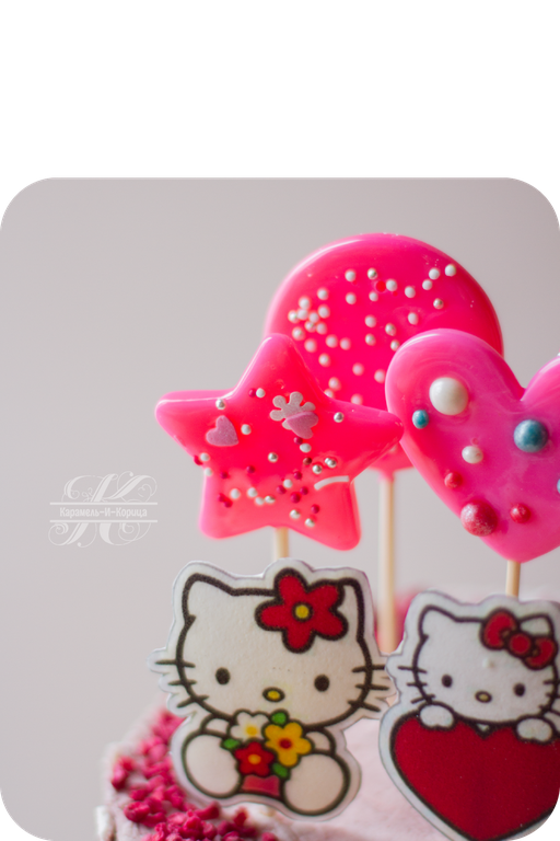 Клубничная посыпка, сахарные леденцы, цвет торта на Ваш выбор.