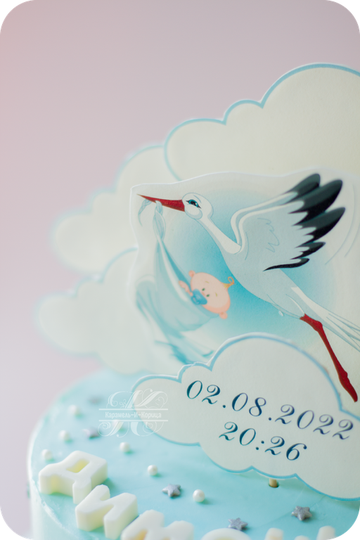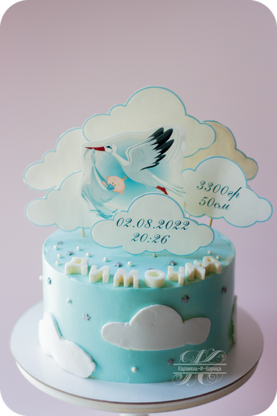 Печать на сахарной бумаге,шоколадный декор, мастичные облака,сахарная посыпка.
