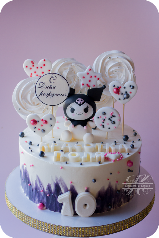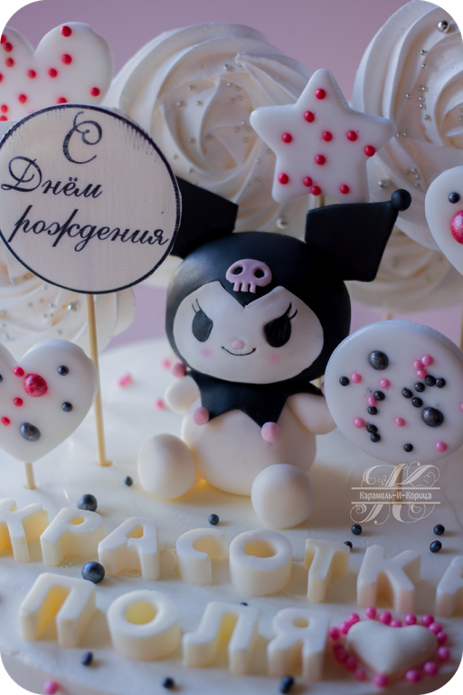 Фигурка мастичная, шоколадный декор,безе, леденцы, сахарная посыпка, цвет торта на ваш выбор.