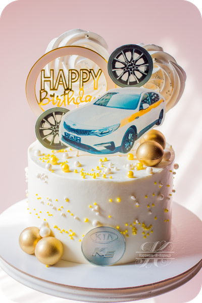 Топпер "машина" съедобный печать на сахарной бумаге, плюс дополнительные картинки по теме. Безе на палочке 3 шт., шоколадные шары 4 шт., топпер акриловый "Happy birthday", сахарная посыпка.