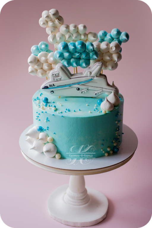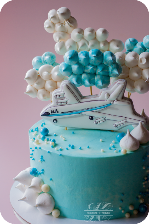 Топпер "Самолет" пряник, безе на палочке в виде облаков 4 шт., маленькие безе, сахарная посыпка.