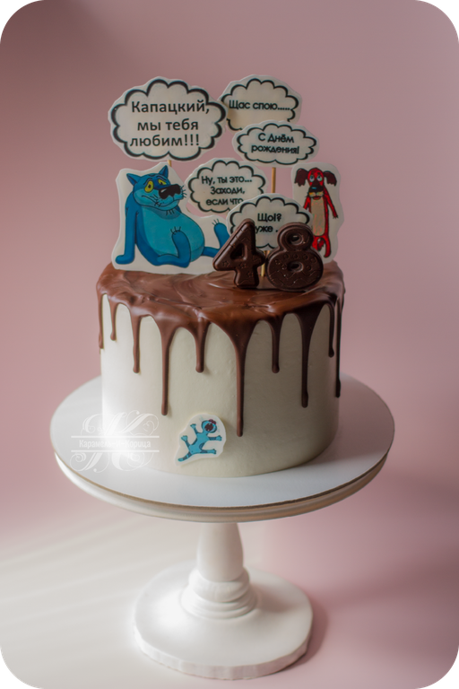 Шоколадные подтеки, печать на сахарной бумаге, шоколадные цифры.
