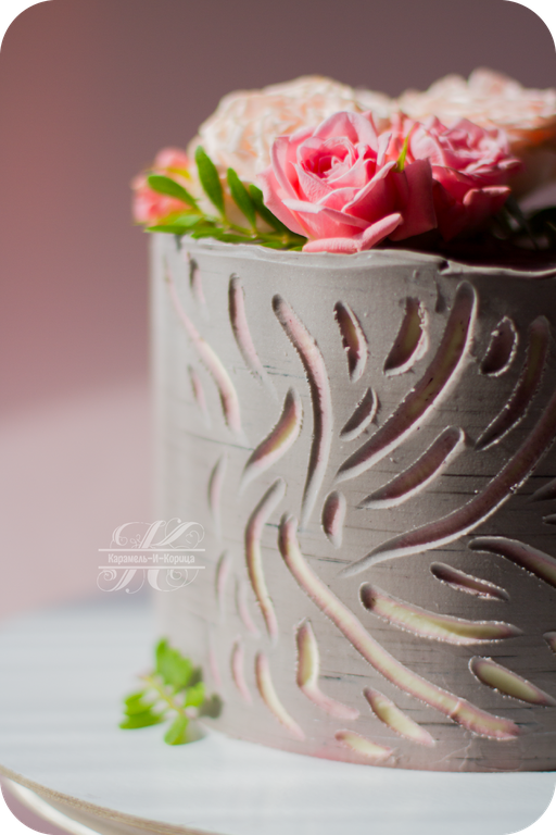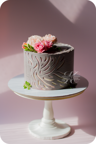 Живые розы, покрытие торта ганаш. Покрытие торта и внутренние цвета в рисунке на ваш выбор.