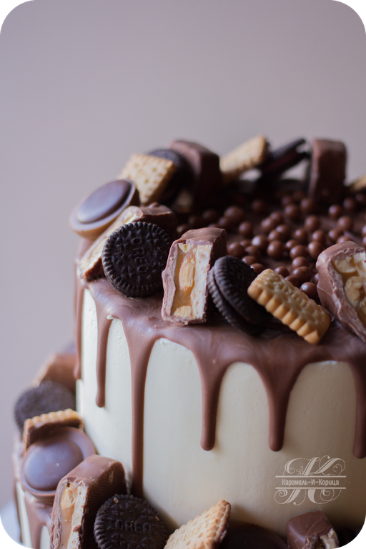 Шоколадные подтеки покрытые пищевым золотом, шоколадное печенье Орео, шоколадные конфеты Тофифи, шоколадное печенье, шоколадные шарики, шоколадные конфеты Сникерс.