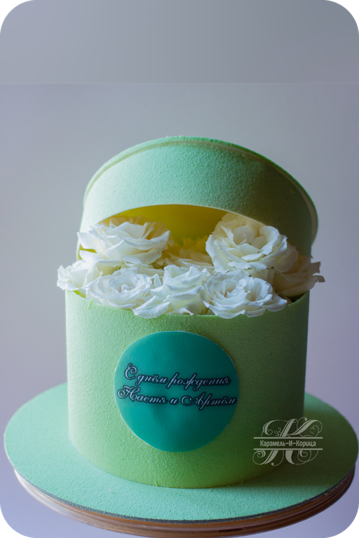 Шоколадная коробка, покрытая велюром (цвет на ваш выбор), живые цветы в коробке. Сахарная картинка.