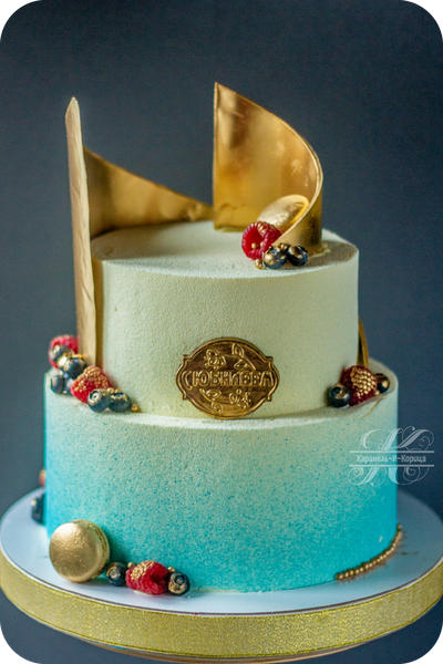Пищевой краситель Золото, бельгийский шоколад , пирожное макаронс на основе: куриного белка, сахара, миндальной муки, бельгийский шоколад,натуральные молочные сливки 33%, сахарная бумага, ягоды голубика и малина.